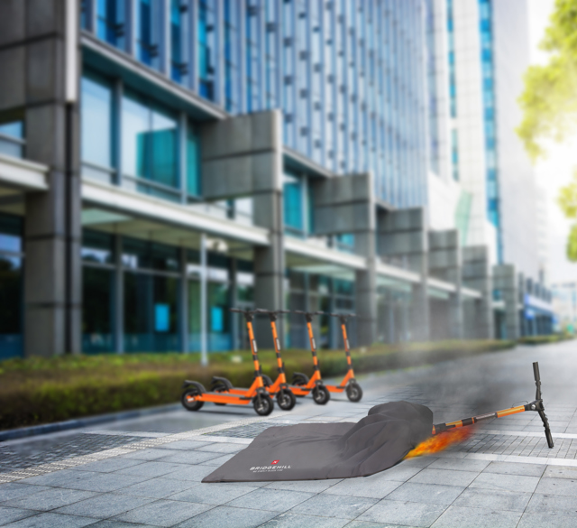 Immediately isolates toxic gases and smoke and protects civilians from carcinogen exposure. A lithium fire blanket is the simplest, safest, and most effective way to isolate lithium battery fires- such as in e-scooters, e-bikes, and open battery fires.